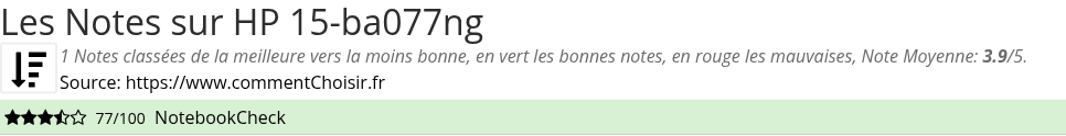 Pour mieux comparer, nous avons cherché pour vous les avantages et inconvénients de HP 15-ba077ng et les notes données par les sites spécialisés.