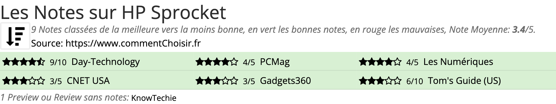 Les notes des sites et magazines internet peuvent etre peut-etre biaisés, au moins avec les avis client et des utilisateurs qui ont acheté HP Sprocket sur amazon ou la fnac, on est sur d'avoir de vrais critiques sur ce produit. (les liens vers les magasins sont sponsorisés).