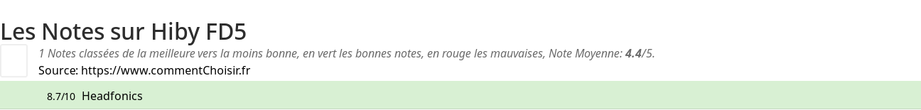 Parmis ces tests des sites & magazines internet spécialisés dans les Casque, 1 ont donné une note et on obtient une note moyenne de 4/5 pour ce produit de Hiby.