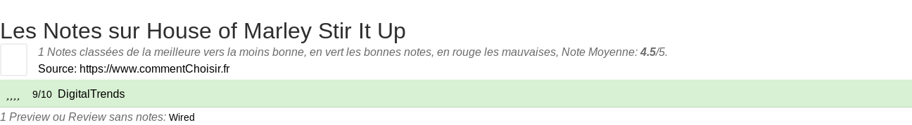 Pour mieux comparer, nous avons cherché pour vous les avantages et inconvénients de House of Marley Stir It Up et les notes données par les sites spécialisés.