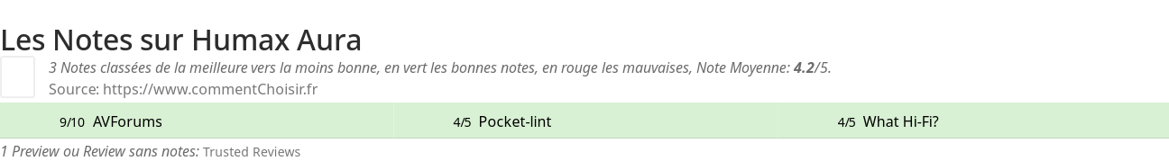 Les "Pour et Contre" sur Humax Aura détails des avis et notes