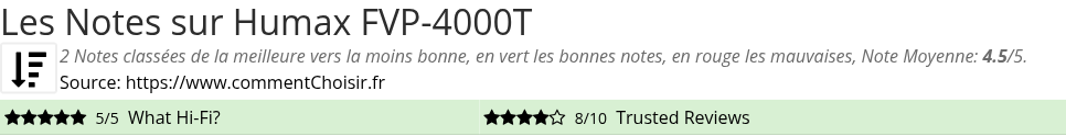 Voici tous les 2 avis et les tests que nous avons trouvé sur Humax FVP-4000T avec les 2 notes et les commentaires des testeurs dans leur review.