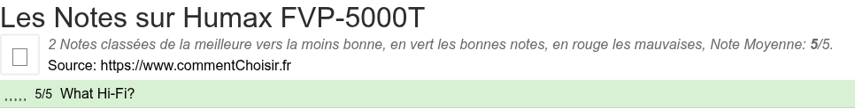 Pour mieux comparer, nous avons cherché pour vous les avantages et inconvénients de Humax FVP-5000T et les notes données par les sites spécialisés.