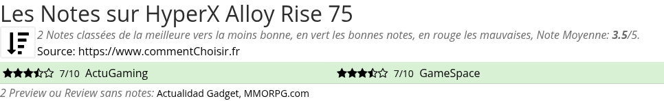 Les notes des sites et magazines internet peuvent etre peut-etre biaisés, au moins avec les avis client et des utilisateurs qui ont acheté HyperX Alloy Rise 75 sur amazon ou la fnac, on est sur d'avoir de vrais critiques sur ce produit. (les liens vers les magasins sont sponsorisés).