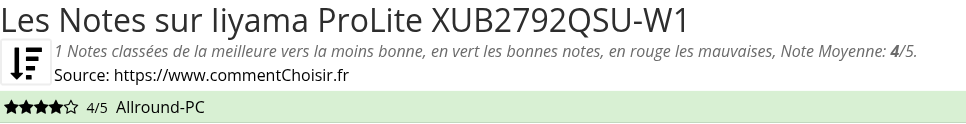 Voici tous les 1 avis et les tests que nous avons trouvé sur le Moniteur Iiyama ProLite XUB2792QSU-W1 avec les 1 notes et les commentaires des testeurs dans leur review.