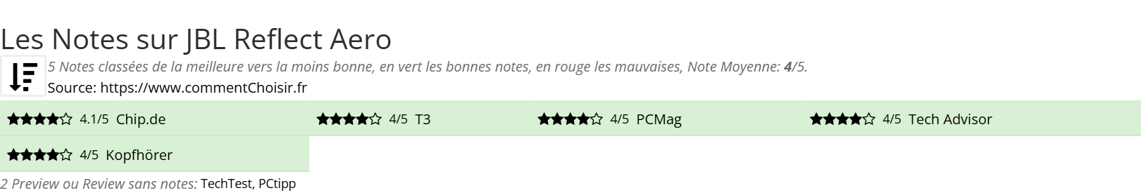 Les notes des sites et magazines internet peuvent etre peut-etre biaisés, au moins avec les avis client et des utilisateurs qui ont acheté JBL Reflect Aero sur amazon ou la fnac, on est sur d'avoir de vrais critiques sur ce produit. (les liens vers les magasins sont sponsorisés).
