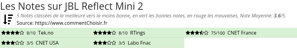 Pour mieux comparer, nous avons cherché pour vous les avantages et inconvénients de JBL Reflect Mini 2 et les notes données par les sites spécialisés.