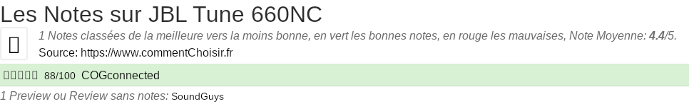 Voici tous les 2 avis et les tests que nous avons trouvé sur le Casque JBL Tune 660NC avec les 1 notes et les commentaires des testeurs dans leur review.