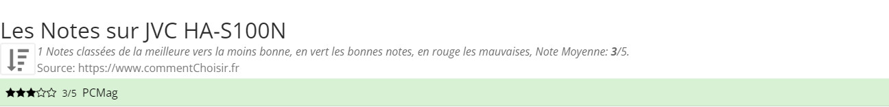 Voici tous les 1 avis et les tests que nous avons trouvé sur le Jeux JVC HA-S100N avec les 1 notes et les commentaires des testeurs dans leur review.