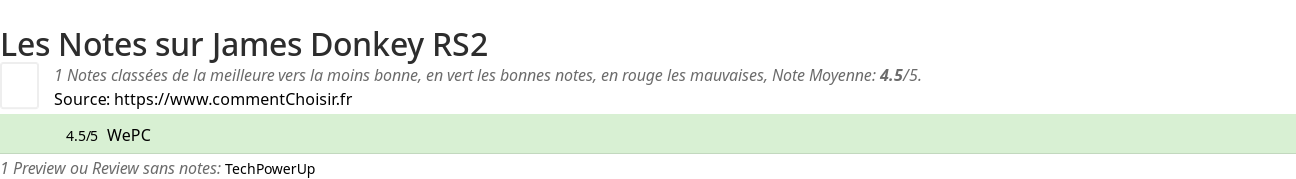 Les notes des sites et magazines internet peuvent etre peut-etre biaisés, au moins avec les avis client et des utilisateurs qui ont acheté James Donkey RS2 sur amazon ou la fnac, on est sur d'avoir de vrais critiques sur ce produit. (les liens vers les magasins sont sponsorisés).