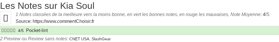 Voici tous les 4 avis et les tests que nous avons trouvé sur le Voiture Kia Soul avec les 1 notes et les commentaires des testeurs dans leur review.
