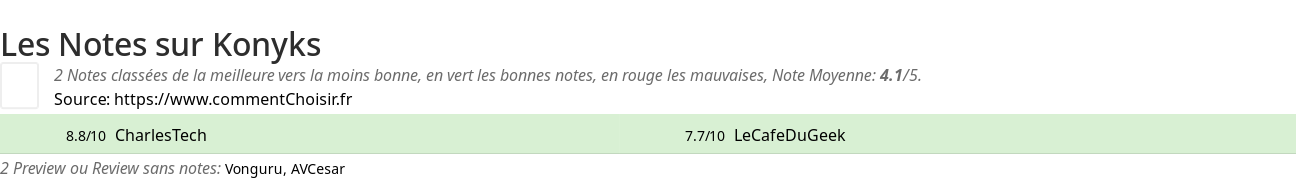 Les "Pour et Contre" sur Konyks détails des avis et notes