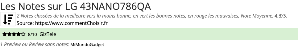 Les notes des sites et magazines internet peuvent etre peut-etre biaisés, au moins avec les avis client et des utilisateurs qui ont acheté LG 43NANO786QA sur amazon ou la fnac, on est sur d'avoir de vrais critiques sur ce produit. (les liens vers les magasins sont sponsorisés).
