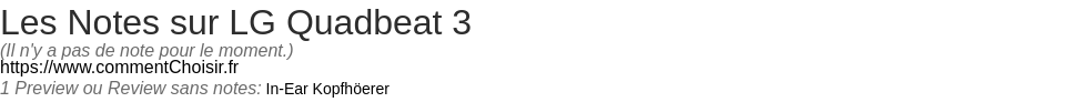Voici tous les 1 avis et les tests que nous avons trouvé sur le Casque LG Quadbeat 3 avec les 0 notes et les commentaires des testeurs dans leur review.