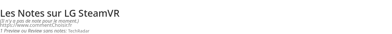 Voici tous les 1 avis et les tests que nous avons trouvé sur le Casque LG SteamVR avec les 0 notes et les commentaires des testeurs dans leur review.