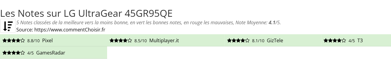 Les notes des sites et magazines internet peuvent etre peut-etre biaisés, au moins avec les avis client et des utilisateurs qui ont acheté LG UltraGear 45GR95QE sur amazon ou la fnac, on est sur d'avoir de vrais critiques sur ce produit. (les liens vers les magasins sont sponsorisés).