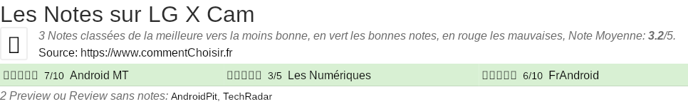 Les notes des sites et magazines internet peuvent etre peut-etre biaisés, au moins avec les avis client et des utilisateurs qui ont acheté LG X Cam sur amazon ou la fnac, on est sur d'avoir de vrais critiques sur ce produit. (les liens vers les magasins sont sponsorisés).