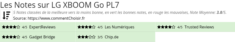 Les notes des sites et magazines internet peuvent etre peut-etre biaisés, au moins avec les avis client et des utilisateurs qui ont acheté LG XBOOM Go PL7 sur amazon ou la fnac, on est sur d'avoir de vrais critiques sur ce produit. (les liens vers les magasins sont sponsorisés).