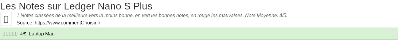 Voici tous les 1 avis et les tests que nous avons trouvé sur Ledger Nano S Plus avec les 1 notes et les commentaires des testeurs dans leur review.