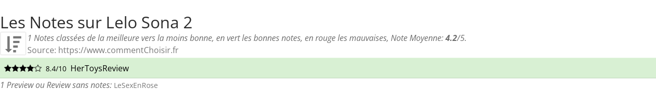 Voici tous les 3 avis et les tests que nous avons trouvé sur le SexToy Lelo Sona 2 avec les 2 notes et les commentaires des testeurs dans leur review.