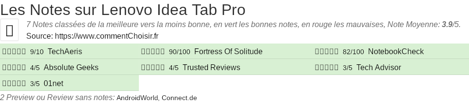 Pour mieux comparer, nous avons cherché pour vous les avantages et inconvénients de Lenovo Idea Tab Pro et les notes données par les sites spécialisés.