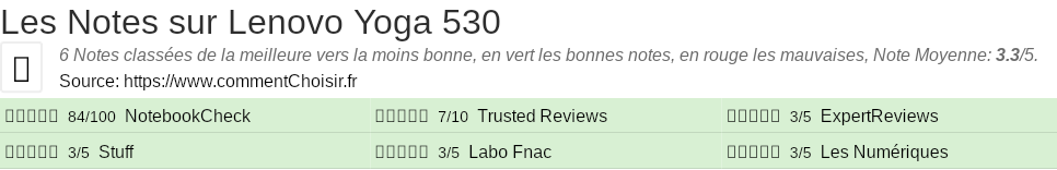 Les notes des sites et magazines internet peuvent etre peut-etre biaisés, au moins avec les avis client et des utilisateurs qui ont acheté Lenovo Yoga 530 sur amazon ou la fnac, on est sur d'avoir de vrais critiques sur ce produit. (les liens vers les magasins sont sponsorisés).