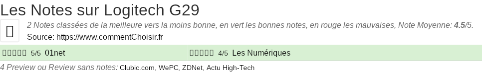 Pour mieux comparer, nous avons cherché pour vous les avantages et inconvénients de Logitech G29 et les notes données par les sites spécialisés.