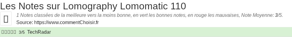 Les notes des sites et magazines internet peuvent etre peut-etre biaisés, au moins avec les avis client et des utilisateurs qui ont acheté Lomography Lomomatic 110 sur amazon ou la fnac, on est sur d'avoir de vrais critiques sur ce produit. (les liens vers les magasins sont sponsorisés).