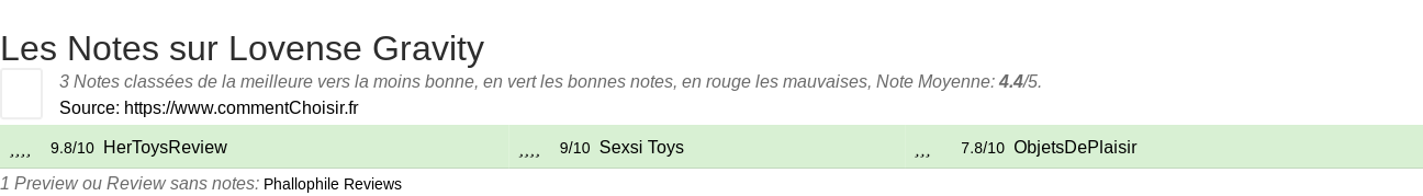 Voici tous les 4 avis et les tests que nous avons trouvé sur le SexToy Lovense Gravity avec les 3 notes et les commentaires des testeurs dans leur review.