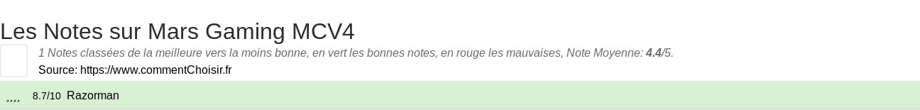 Quelle note pour Mars Gaming MCV4 ?