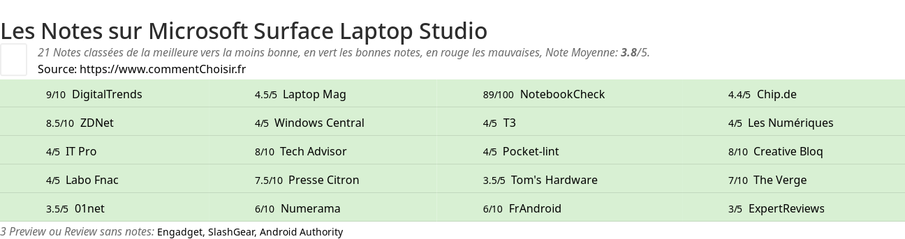 Pour mieux comparer, nous avons cherché pour vous les avantages et inconvénients de Microsoft Surface Laptop Studio et les notes données par les sites spécialisés.