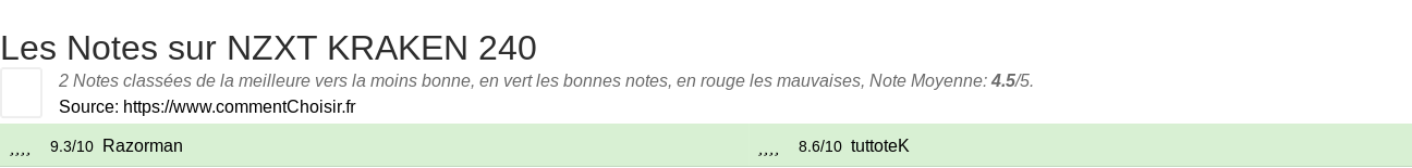 Voici tous les 2 avis et les tests que nous avons trouvé sur le Composants NZXT KRAKEN 240 avec les 2 notes et les commentaires des testeurs dans leur review.