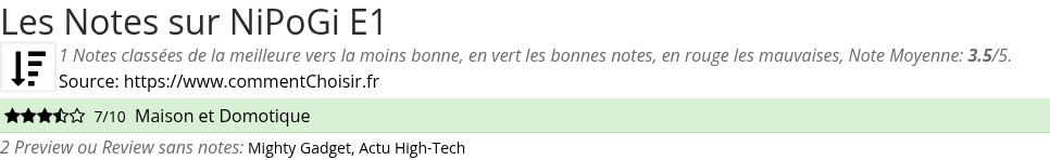 Les notes des sites et magazines internet peuvent etre peut-etre biaisés, au moins avec les avis client et des utilisateurs qui ont acheté NiPoGi E1 sur amazon ou la fnac, on est sur d'avoir de vrais critiques sur ce produit. (les liens vers les magasins sont sponsorisés).
