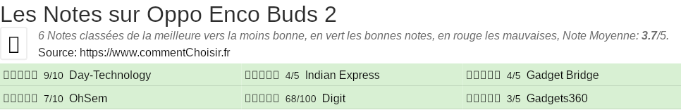 Pour mieux comparer, nous avons cherché pour vous les avantages et inconvénients de Oppo Enco Buds 2 et les notes données par les sites spécialisés.