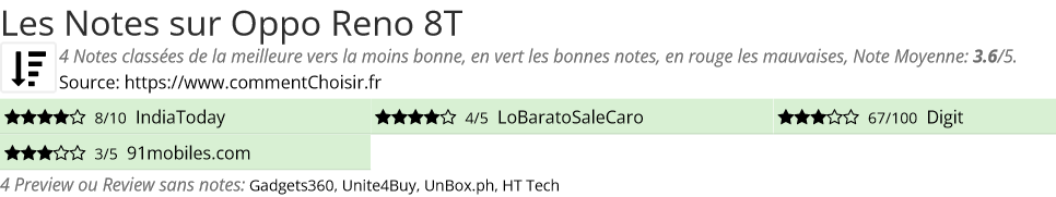 Les notes des sites et magazines internet peuvent etre peut-etre biaisés, au moins avec les avis client et des utilisateurs qui ont acheté Oppo Reno 8T sur amazon ou la fnac, on est sur d'avoir de vrais critiques sur ce produit. (les liens vers les magasins sont sponsorisés).