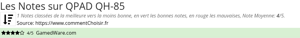 Les notes des sites et magazines internet peuvent etre peut-etre biaisés, au moins avec les avis client et des utilisateurs qui ont acheté QPAD QH-85 sur amazon ou la fnac, on est sur d'avoir de vrais critiques sur ce produit. (les liens vers les magasins sont sponsorisés).