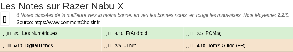 Les notes des sites et magazines internet peuvent etre peut-etre biaisés, au moins avec les avis client et des utilisateurs qui ont acheté Razer Nabu X sur amazon ou la fnac, on est sur d'avoir de vrais critiques sur ce produit. (les liens vers les magasins sont sponsorisés).