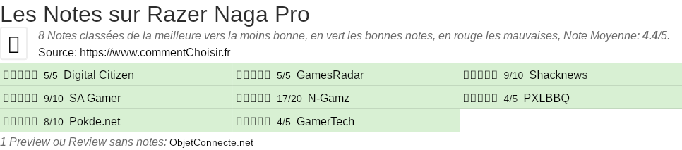 Les notes des sites et magazines internet peuvent etre peut-etre biaisés, au moins avec les avis client et des utilisateurs qui ont acheté Razer Naga Pro sur amazon ou la fnac, on est sur d'avoir de vrais critiques sur ce produit. (les liens vers les magasins sont sponsorisés).