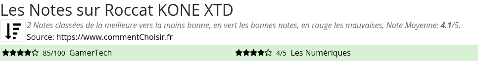 Les notes des sites et magazines internet peuvent etre peut-etre biaisés, au moins avec les avis client et des utilisateurs qui ont acheté Roccat KONE XTD sur amazon ou la fnac, on est sur d'avoir de vrais critiques sur ce produit. (les liens vers les magasins sont sponsorisés).