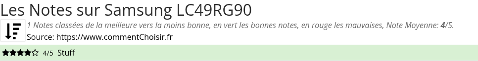Les notes des sites et magazines internet peuvent etre peut-etre biaisés, au moins avec les avis client et des utilisateurs qui ont acheté Samsung LC49RG90 sur amazon ou la fnac, on est sur d'avoir de vrais critiques sur ce produit. (les liens vers les magasins sont sponsorisés). Pour les jeux et quand cela est est possible nous listons aussi les notes moyennes sur les plateformes de consommateurs (comme IGDB)