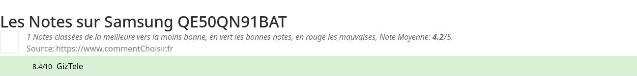 Pour mieux comparer, nous avons cherché pour vous les avantages et inconvénients de Samsung QE50QN91BAT et les notes données par les sites spécialisés.