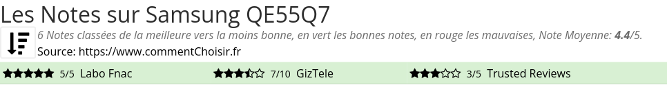 Les notes des sites et magazines internet peuvent etre peut-etre biaisés, au moins avec les avis client et des utilisateurs qui ont acheté Samsung QE55Q7 sur amazon ou la fnac, on est sur d'avoir de vrais critiques sur ce produit. (les liens vers les magasins sont sponsorisés).