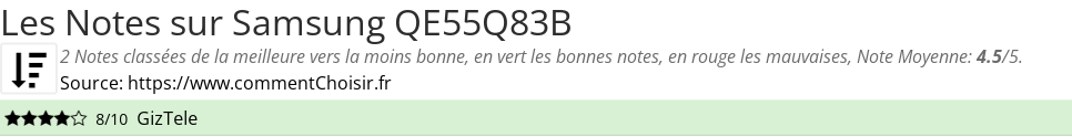 Pour mieux comparer, nous avons cherché pour vous les avantages et inconvénients de Samsung QE55Q83B et les notes données par les sites spécialisés.