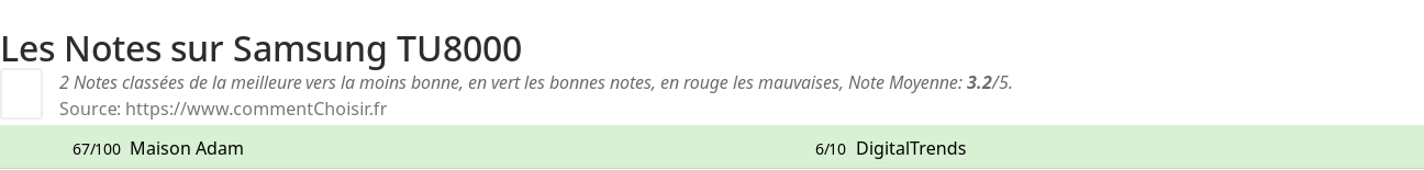 Pour mieux comparer, nous avons cherché pour vous les avantages et inconvénients de Samsung TU8000 et les notes données par les sites spécialisés.