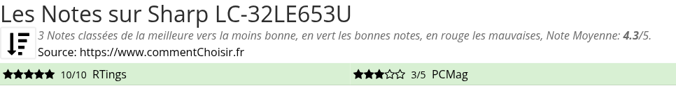 Les notes des sites et magazines internet peuvent etre peut-etre biaisés, au moins avec les avis client et des utilisateurs qui ont acheté Sharp LC-32LE653U sur amazon ou la fnac, on est sur d'avoir de vrais critiques sur ce produit. (les liens vers les magasins sont sponsorisés).