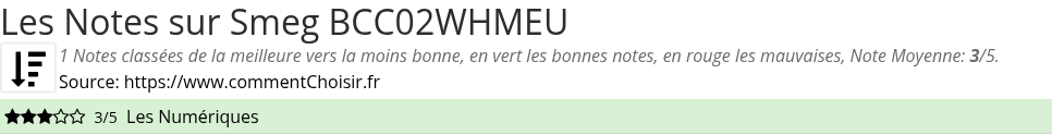 Les notes des sites et magazines internet peuvent etre peut-etre biaisés, au moins avec les avis client et des utilisateurs qui ont acheté Smeg BCC02WHMEU sur amazon ou la fnac, on est sur d'avoir de vrais critiques sur ce produit. (les liens vers les magasins sont sponsorisés).