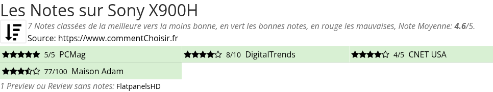 Pour mieux comparer, nous avons cherché pour vous les avantages et inconvénients de Sony X900H et les notes données par les sites spécialisés.