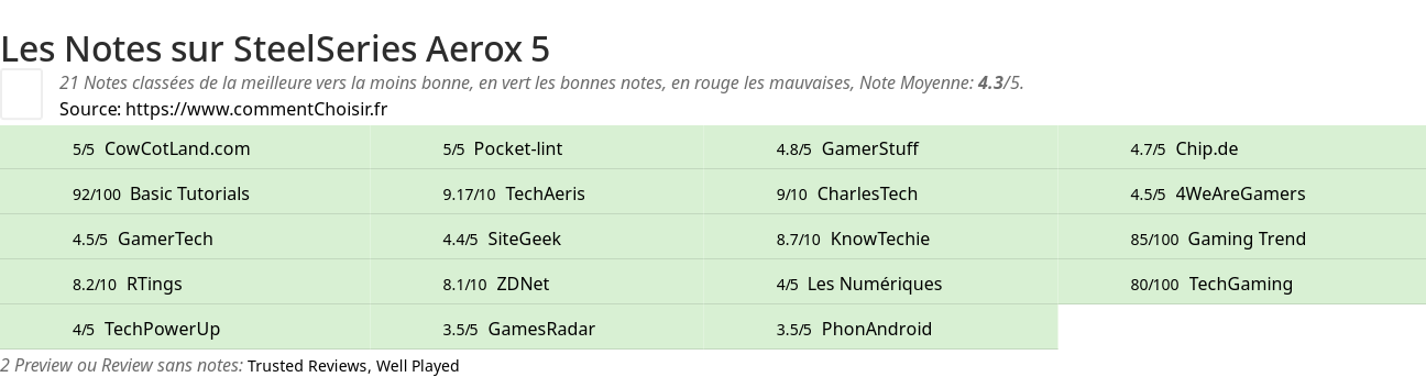 Pour mieux comparer, nous avons cherché pour vous les avantages et inconvénients de SteelSeries Aerox 5 et les notes données par les sites spécialisés.