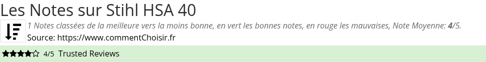 Pour mieux comparer, nous avons cherché pour vous les avantages et inconvénients de Stihl HSA 40 et les notes données par les sites spécialisés.