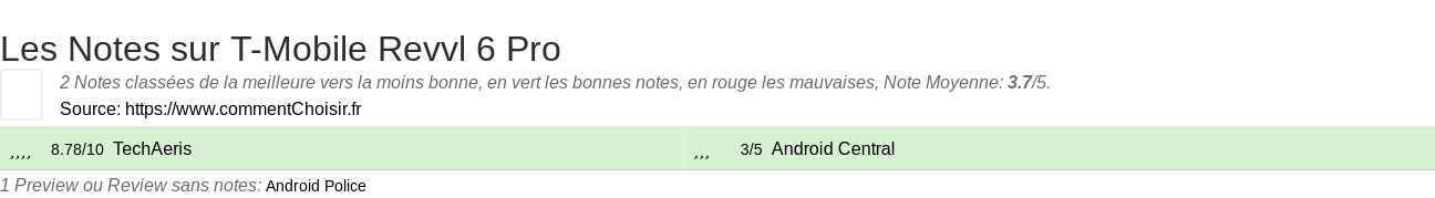 Voici tous les 3 avis et les tests que nous avons trouvé sur le Téléphone portable T-Mobile Revvl 6 Pro avec les 2 notes et les commentaires des testeurs dans leur review.